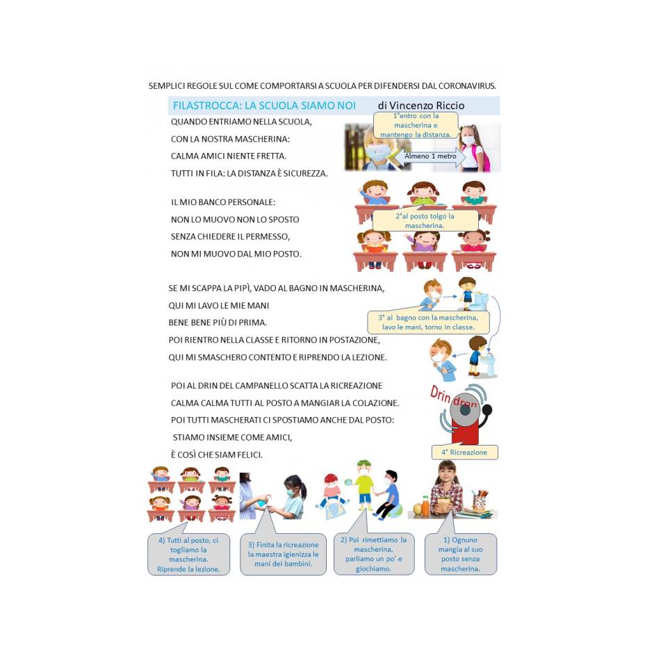 scarica la filastrocca sulla prevenzione da coronavirus in classe. I bambini potranno apprendere i copotamenti giusti da tenere.